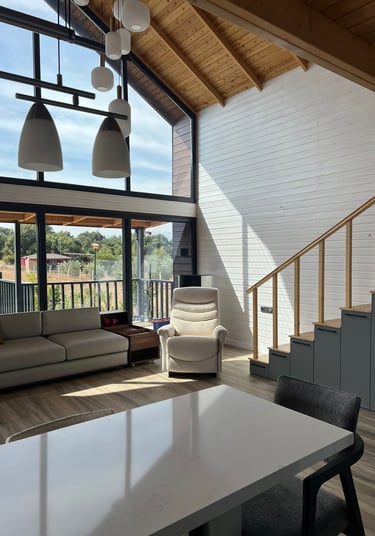 This two-story tiny house project combines modern architectural language with natural materials such as wood and stone. Designed for flexible and sustainable living, the structure balances compact spatial efficiency with a strong connection to its surrounding environment.